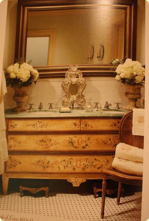 Okay, I want this painted vanity in my bathroom, and did you notice the cute little footstools under the vanity?  This may be a child’s bathroom – lucky child!