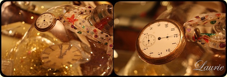 Okay, I got sidetracked a little. The point I was trying to make is that, as I begin this new year, I am feeling blessed to have old friends (some of whom have been my friends since childhood) as well as new friends (most of whom I’ll never meet in person). For my New Year’s Day table, I used silver and gold to signify my gratefulness for both old friends and new friends (and also for reflection!). I also used my grandmother’s and grandfather’s pocket watches, because they are definitely old, and I used a clock face and clock hands from the Graphics Fairy, who is one of my new-through-blogging-friends.